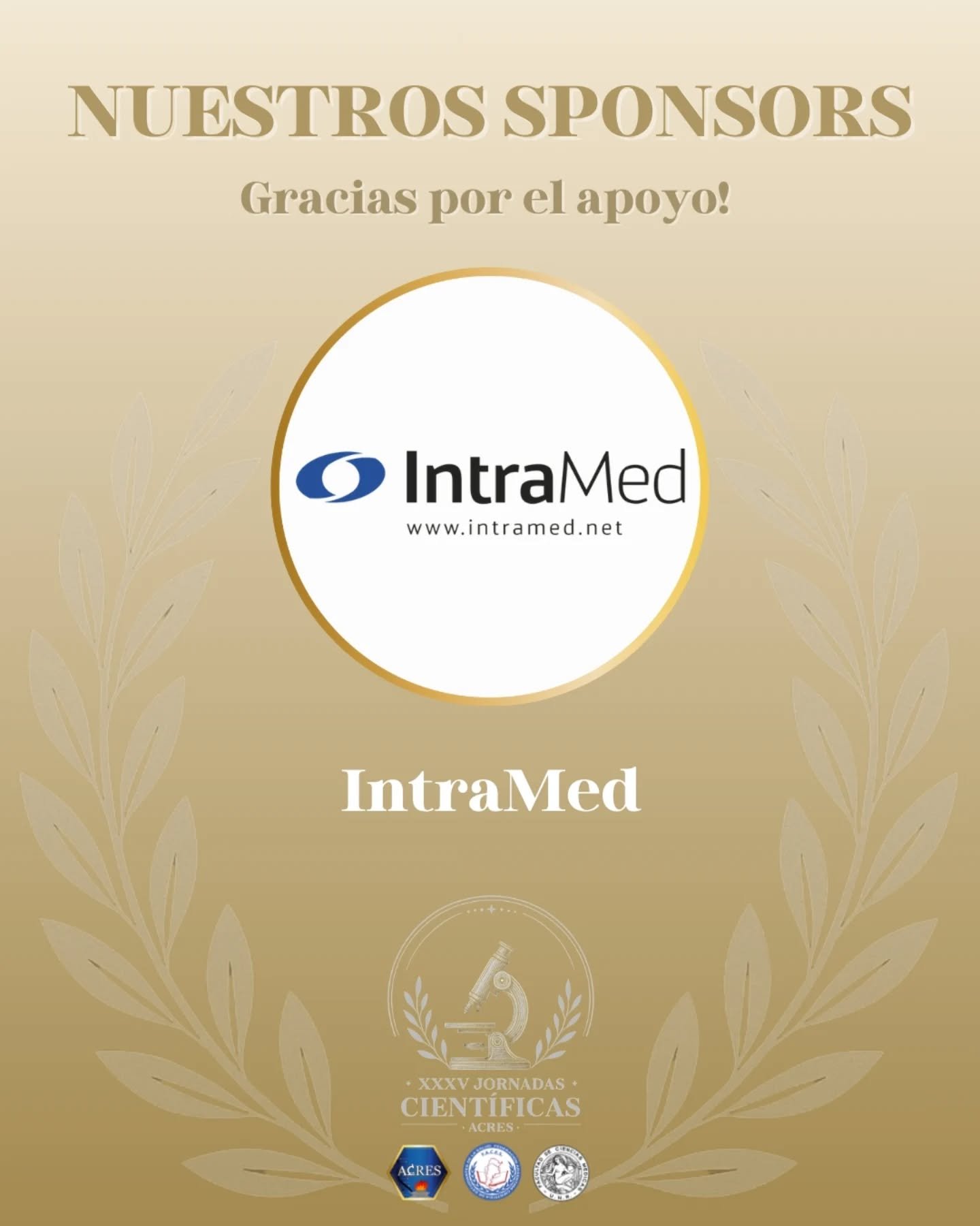 Agradecemos a IntraMed, nuestro sponsor que ha hecho posible la realización de esta jornada. Su compromiso y apoyo han sido fundamentales para llevar adelante este evento, que busca generar un espacio de encuentro, aprendizaje y crecimiento para todos. Valoramos profundamente la alianza construida con ellos, y esperamos seguir trabajando juntos en futuros eventos 🔬