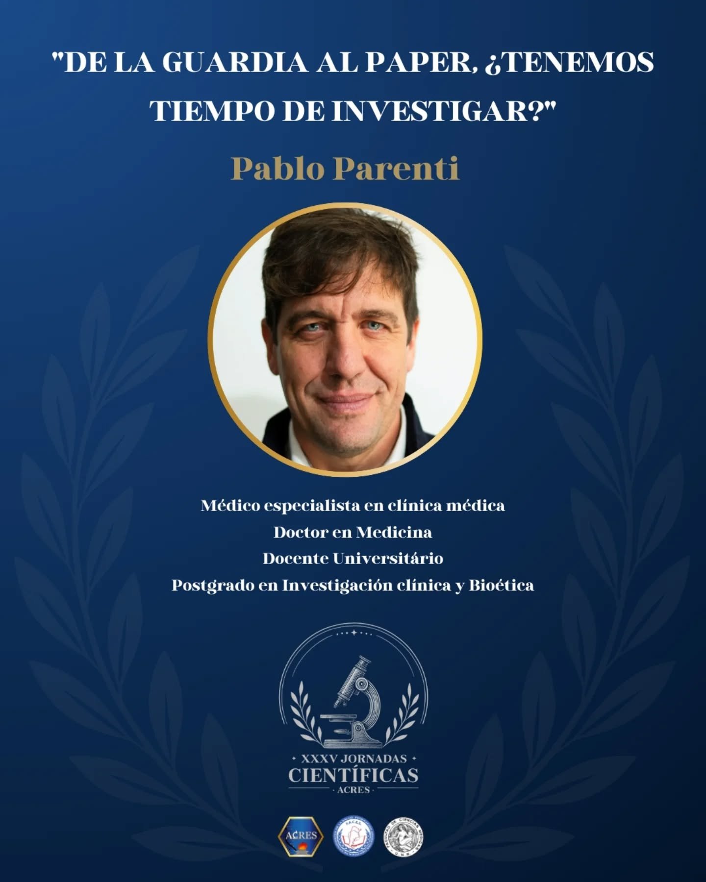 🔬 XXXV JORNADAS CIENTÍFICAS Charla“De la guardia al paper, ¿tenemos tiempo de investigar?”‍⚕️ Dr. Pablo Parenti-Médico especialista en clínica médica-Doctor en Medicina-Docente universitario-Postgrado en Investigación clínica y Bioética 3 y 4 de octubre Facultad de Ciencias Médicas (UNR)…………#Investigacion #JornadasCientificas #Congreso #EstudianteMedicina #UNR